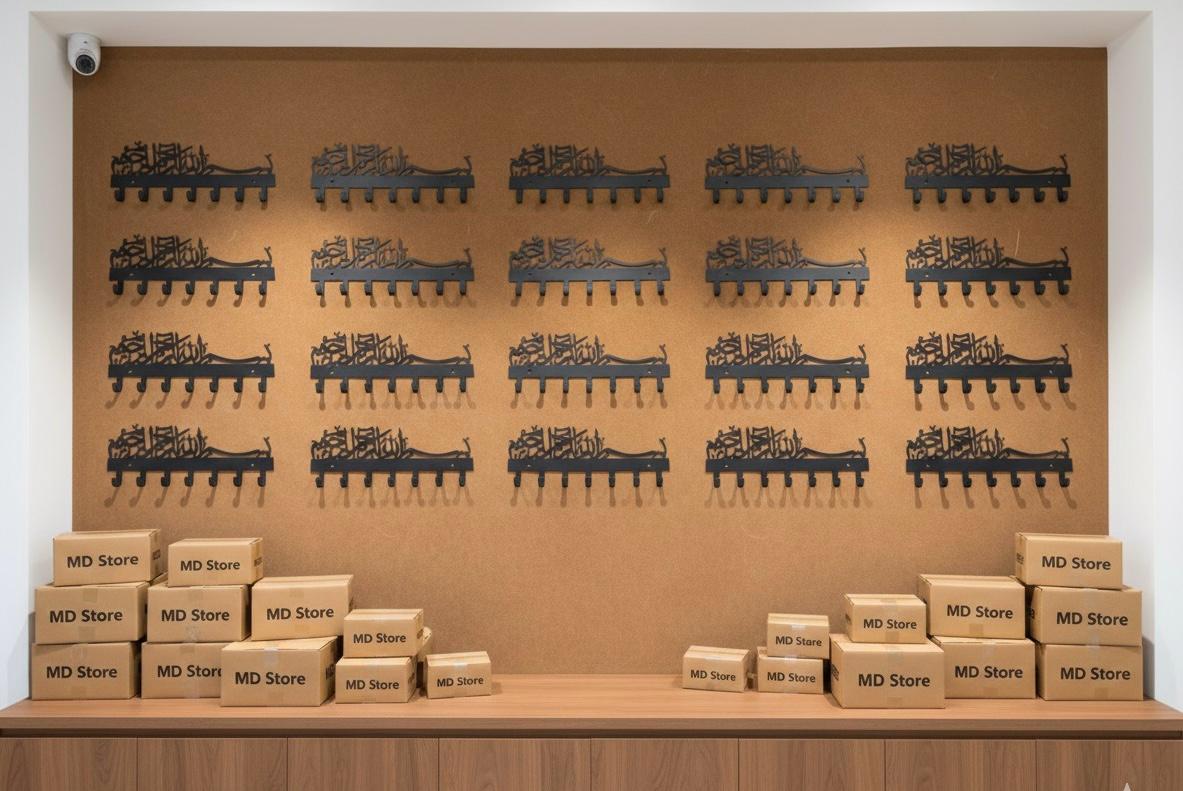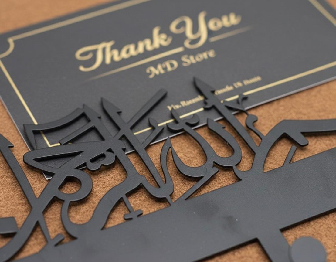 Transform your entryway with this stunning Bismillah key holder featuring beautiful Islamic calligraphy. Perfect for organizing keys, coats, towels, and more while adding a touch of Islamic elegance to your home.