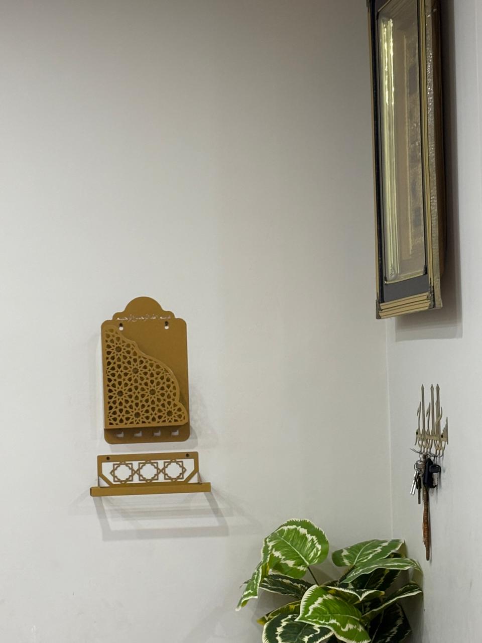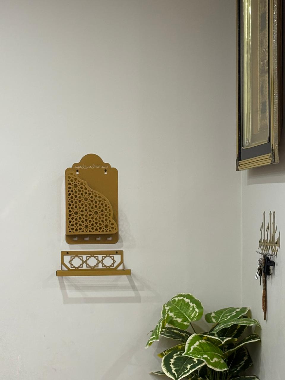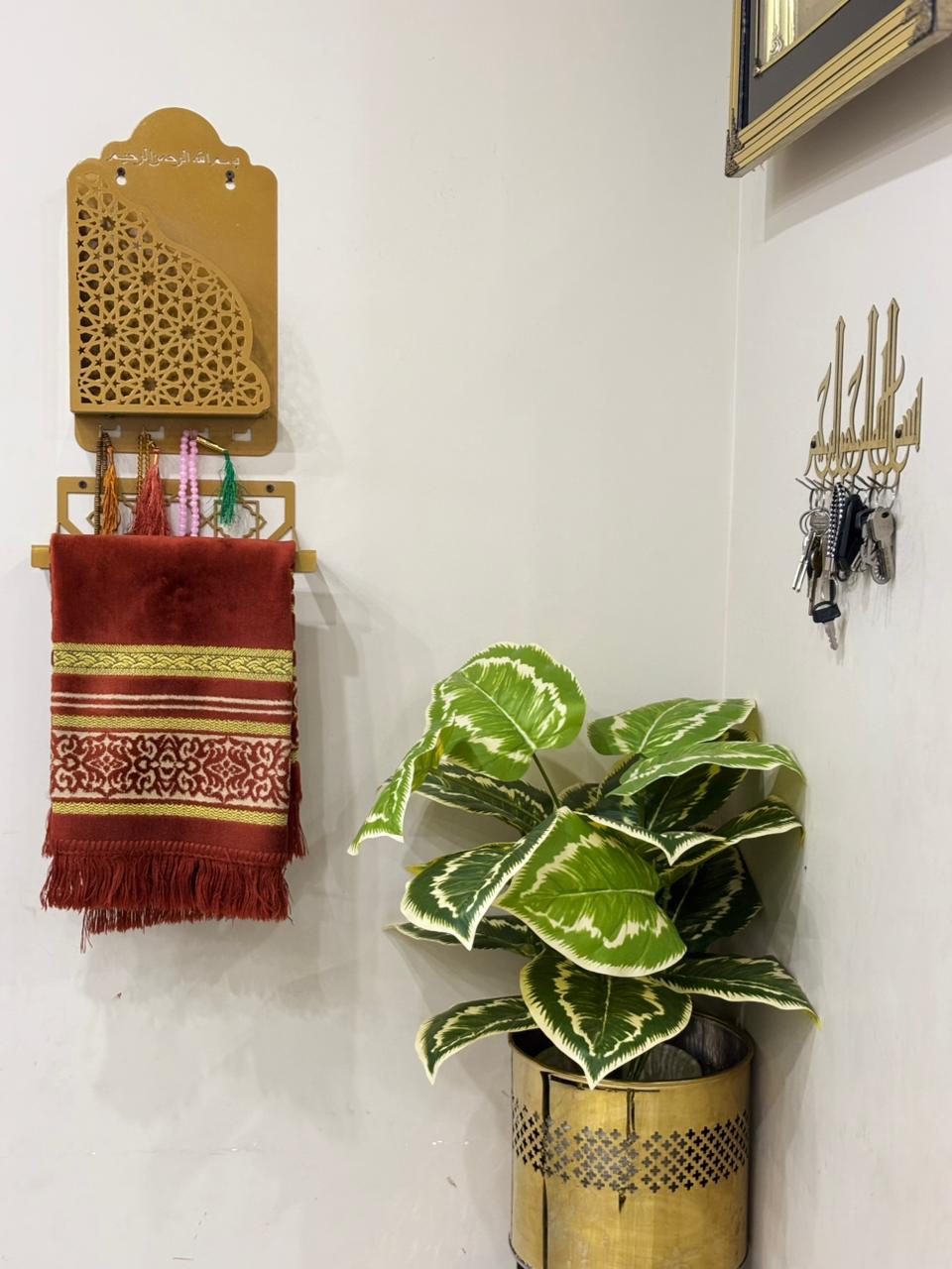 - Jaynamaz Holder: Stylish wall-mounted holder with Islamic pattern, keeps your prayer mat organized and accessible